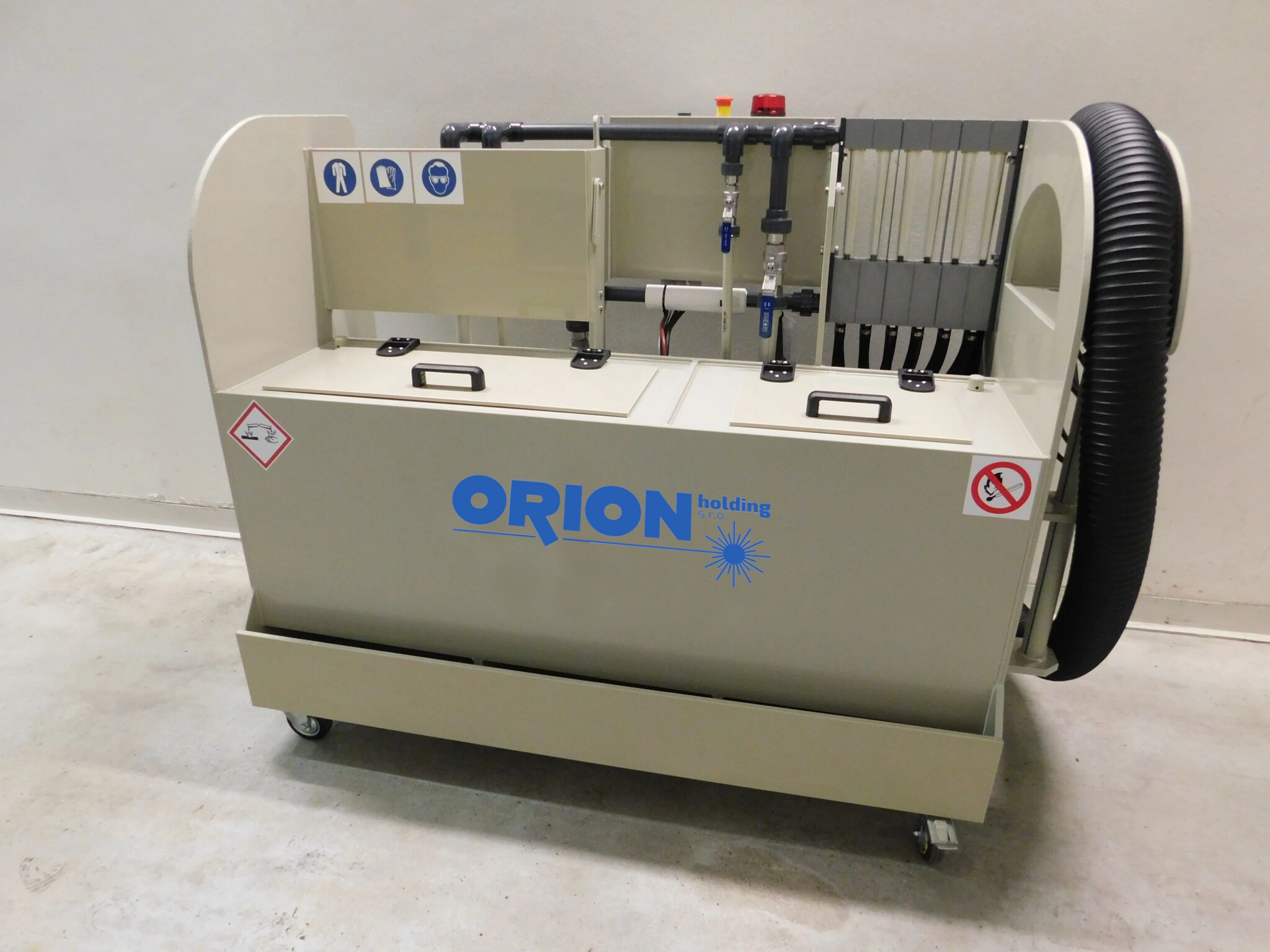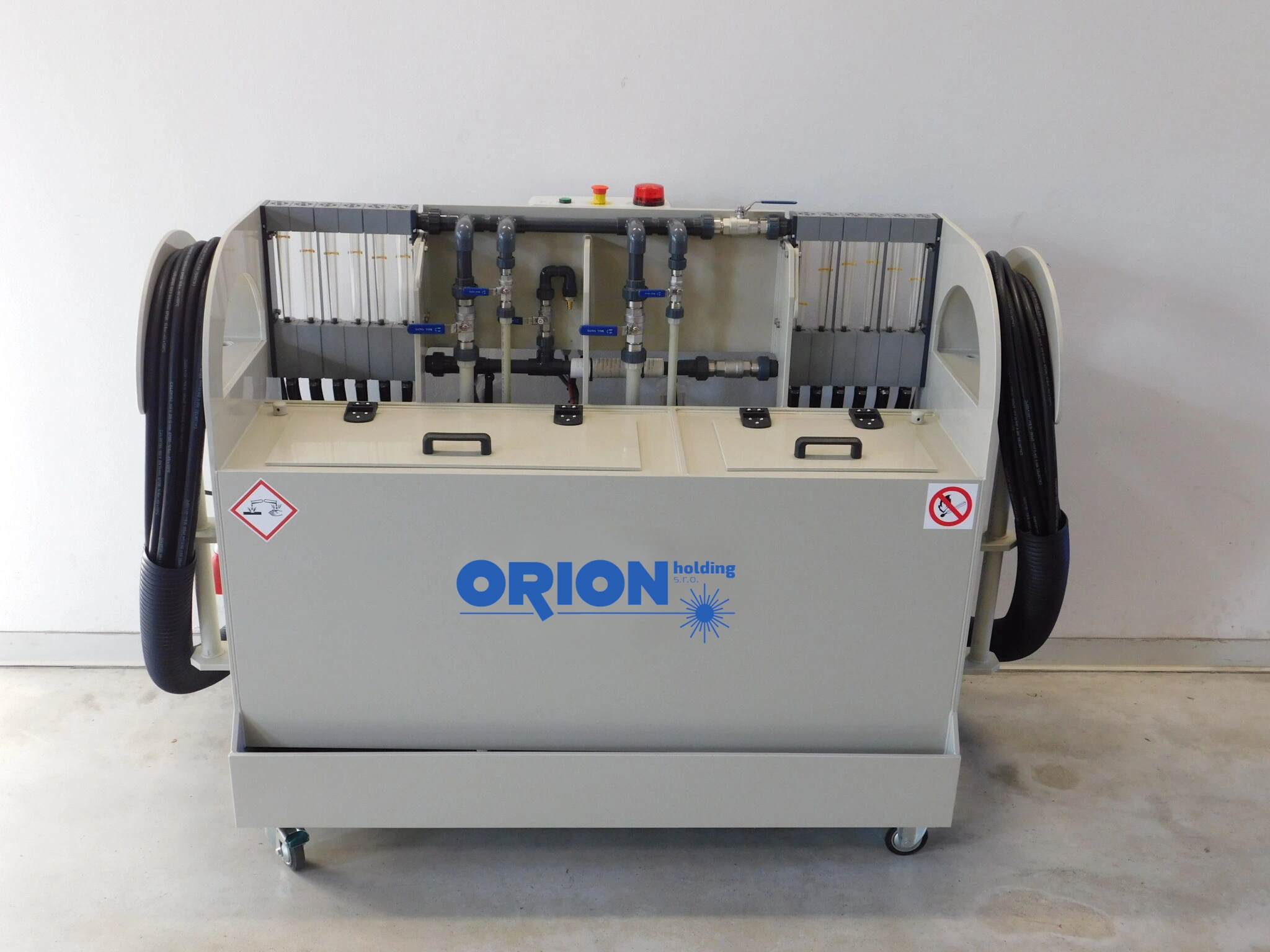 Zařízení je kompaktní celek, který tvoří nádrž na vlastní aktivní chemickou látku, nádrž na vodu pro proplach, záchytná jímka, PP a PVC rozvody, nerezové ventily, nerezová topná spirála a čidlo, termostat a nerezové čerpadlo s frekvenčním měničem. V závislosti na zvolené konfiguraci lze agregát osadit digitálním průtokoměr pro přesné měření průtoku. Pro vizuální kontrolu průtoku je dle počtu čištěných chladicích okruhů zařízení opatřeno plovákovými průtokoměry. Celé zařízení je pro snadnější manipulaci opatřeno dvěma pevnými a dvěma otočnými kolečky. Celá konstrukce je svařena z PP desek a tvoří tím samonosný celek bez nutnosti nosného rámu.